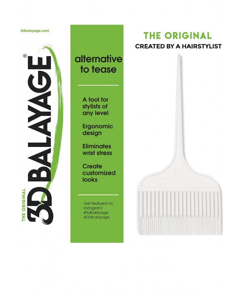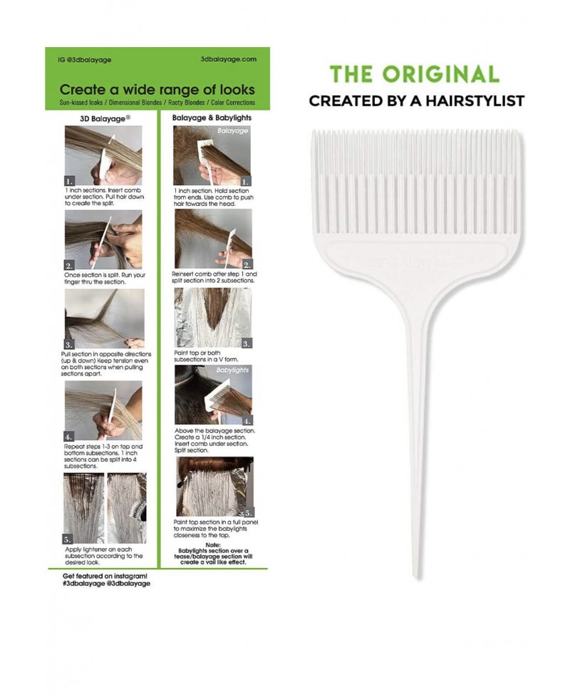 Peine 3D Balayage profesional para mechas y reflejos uniformes. Diseño blanco ideal para contraste en cabello oscuro. Resistente a tintes y acelera la coloración.