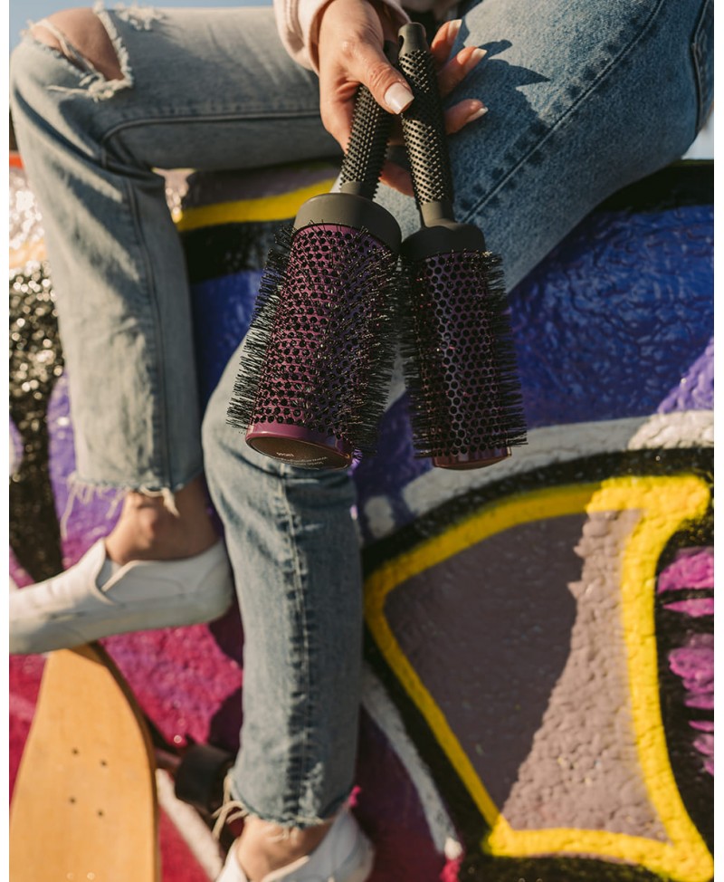 El Cepillo Brushing Carbono y Turmalina Ergo 53mm es la herramienta profesional perfecta para conseguir peinados lisos, con volumen controlado y duraderos. La combinación de Carbono y Turmalina en el barril metálico asegura la distribución uniforme del calor, neutralizando la estática y cerrando la cutícula del cabello.