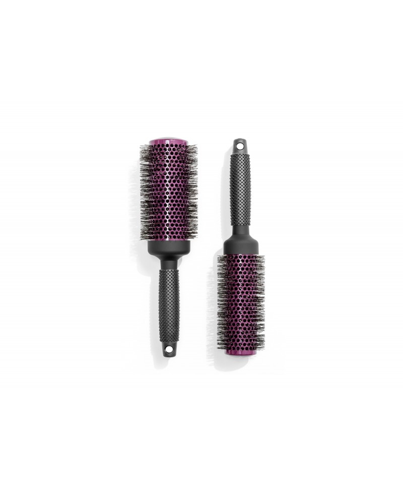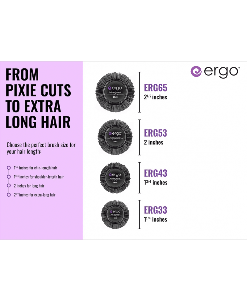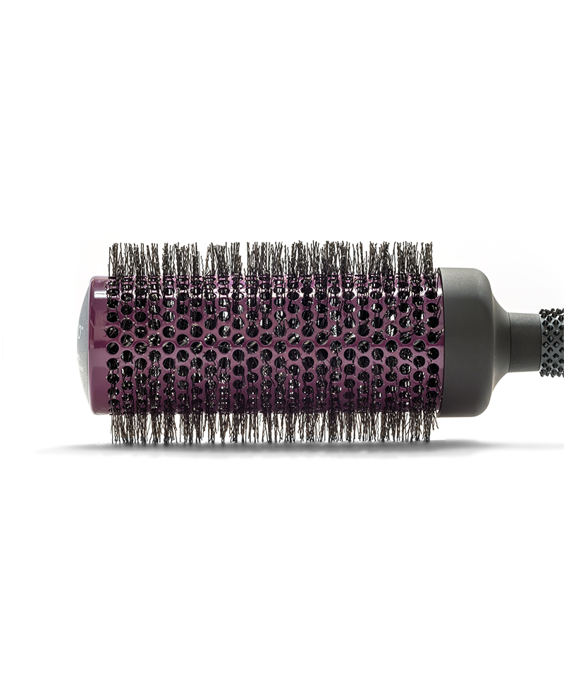 Cepillo redondo Ergo 53mm con tecnología de Carbono y Turmalina. Elimina el frizz, aporta máximo brillo y facilita el secado de cabello largo. Agarre ergonómico.