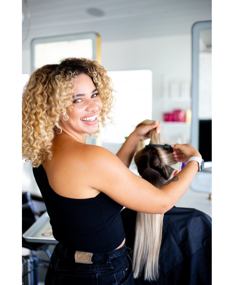 Su diseño es ligero pero poderoso, incorporando una banda antideslizante que evita que el cabello se escape, incluso en las texturas más finas. El muelle de alta tensión garantiza que el clip permanezca en su sitio sin dejar marcas ni tirones, haciendo que tu trabajo sea más rápido y preciso.