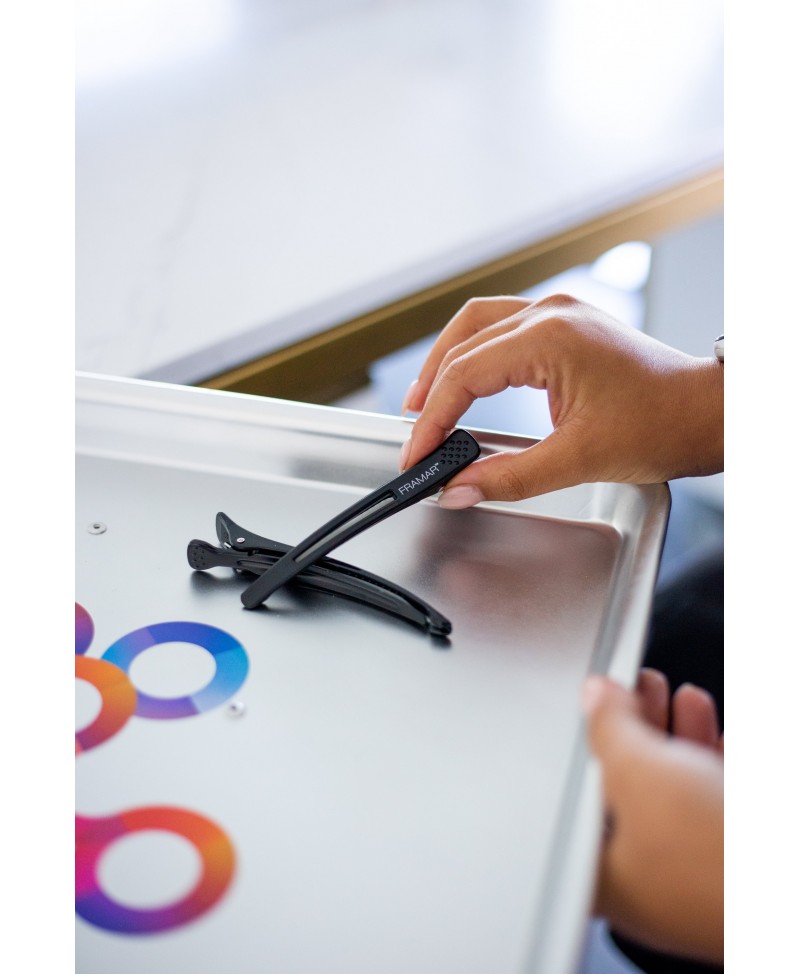 Cuando trabajas con cabello denso, largo o grandes cantidades, necesitas una sujeción que no falle. Los Clips Súper Seccionadores Framar en color Negro ofrecen un agarre excepcional, manteniendo las secciones de cabello firmemente separadas durante la coloración, corte o peinado.