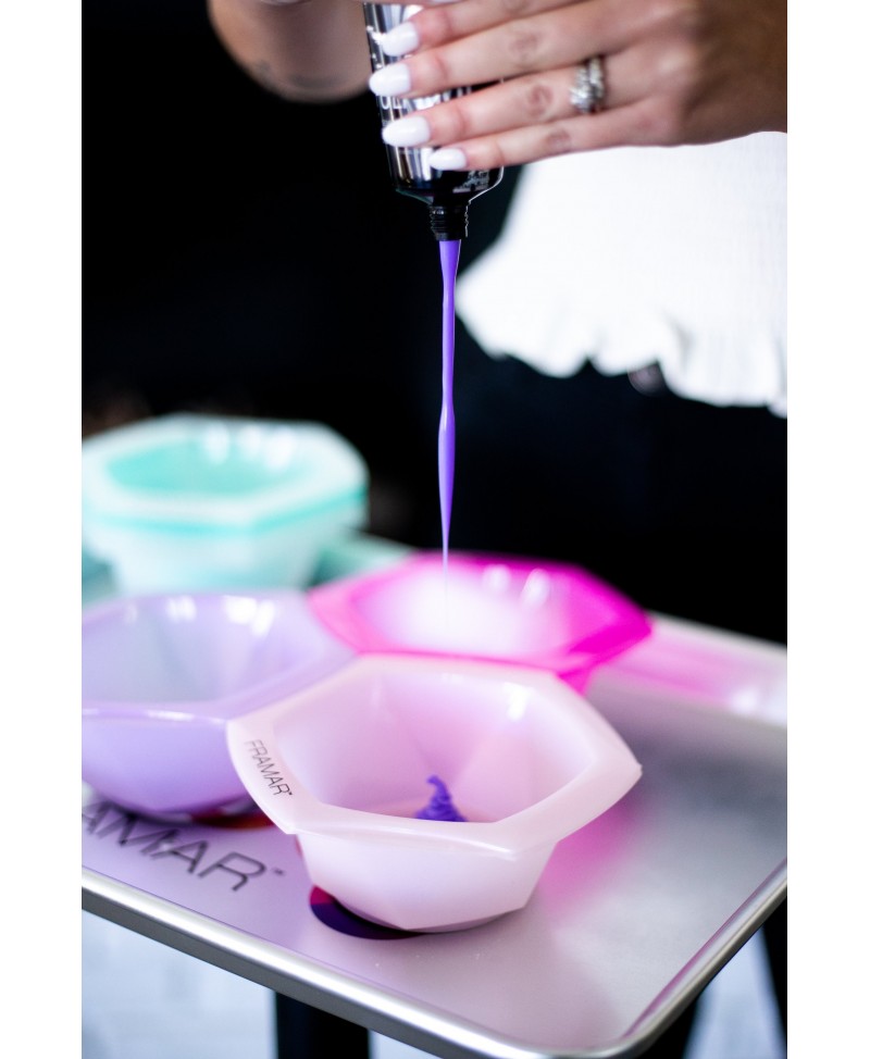 Framar entiende la necesidad de la eficiencia. Cada color de bowl te permite asignar una fórmula específica, eliminando el riesgo de errores de mezcla y optimizando tu flujo de trabajo de principio a fin.