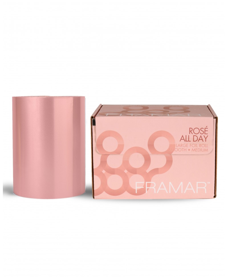 El Framar Papel Aluminio Rosé All Day 500m es una herramienta esencial que aporta estilo y eficiencia máxima a tu salón. Este formato masivo de 500 metros (13cm de ancho) es la mejor opción para salones con alta demanda, asegurando la máxima rentabilidad y el mínimo desperdicio.