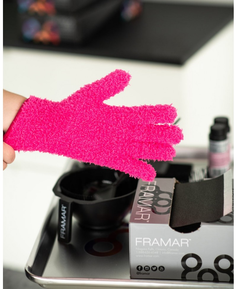 El Framar Guante Bleach Blender 2 Pack es el accesorio imprescindible para los coloristas que buscan la máxima precisión y un acabado perfectamente difuminado en sus técnicas de coloración a mano alzada. Este innovador guante, parte de la línea especializada de Framar, permite aplicar y suavizar la línea de decolorante, tintes o toners directamente con la palma de la mano.
