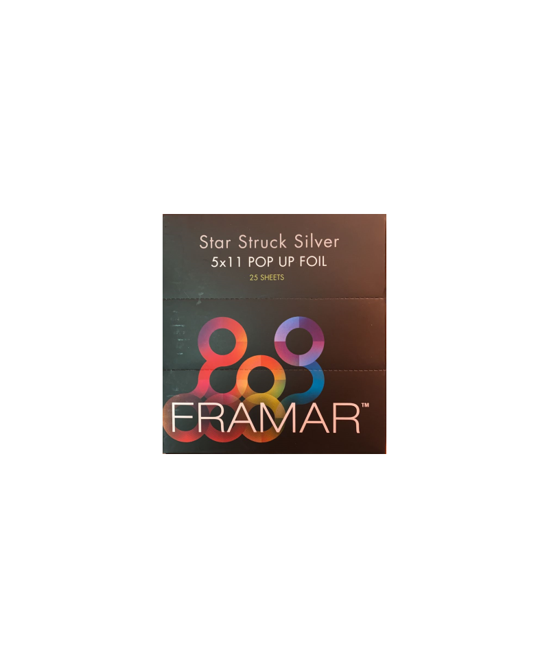 Pack de 25 hojas Framar Pop Ups Star Struck Silver (13x28cm). Tamaño de prueba o viaje. Papel de aluminio pre-cortado para mechas rápidas y sin desperdicio.