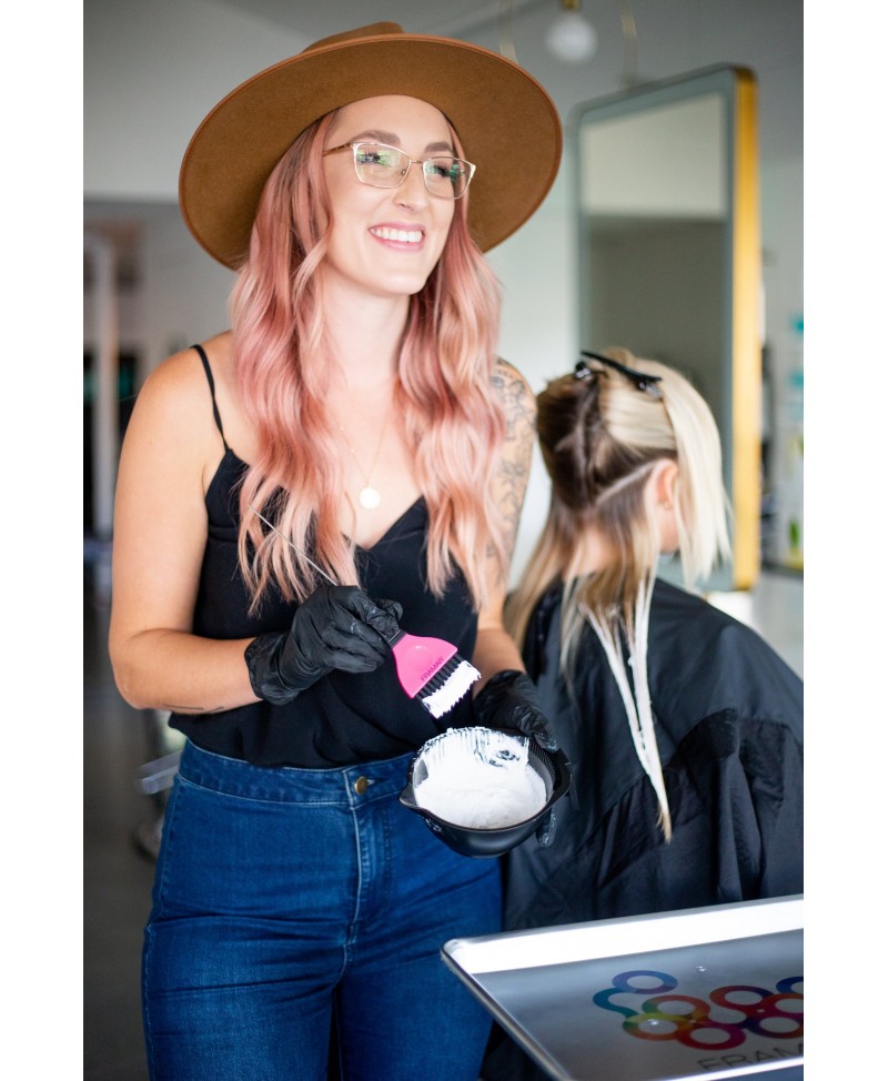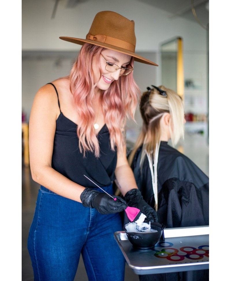 La púa es perfecta para dividir el cabello en secciones precisas para mechas, highlights o retoques de raíz. Una vez separada la sección, simplemente gira la brocha y aplica el tinte con las cerdas uniformes. ¡El control nunca fue tan fácil!
