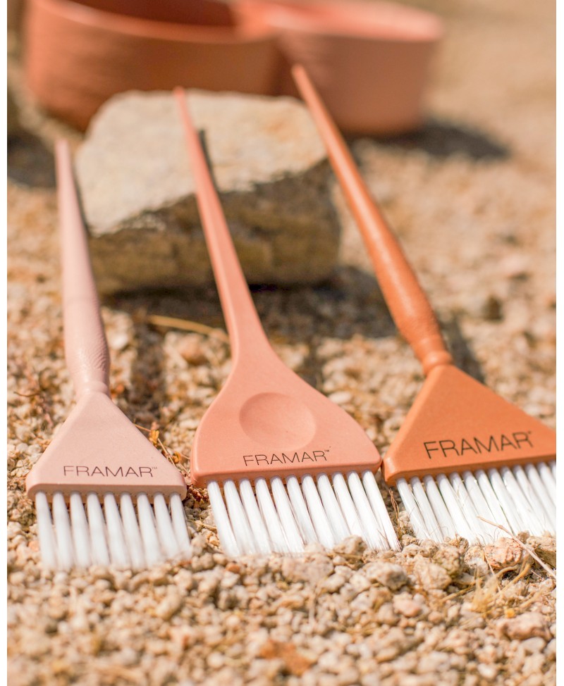 El Framar Set Brochas Family Pack Golden Hour es el kit inicial o de complemento definitivo para el estilista. La diversidad de tamaños en este 3-pack permite realizar transiciones fluidas entre aplicaciones de raíz a cobertura total y técnicas especializadas como el freehand o los detalles de contorno.