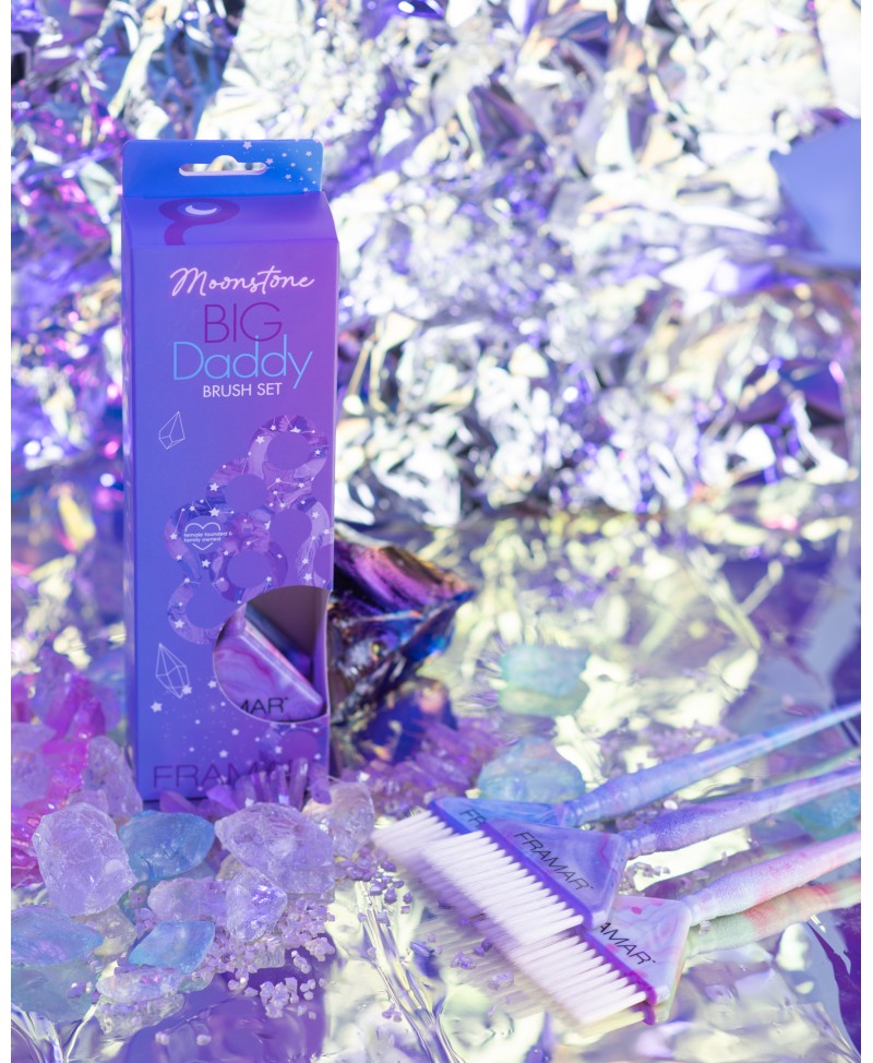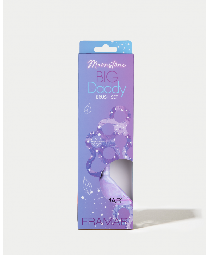 El set Big Daddy Moonstone de Framar (3 unidades) incluye las brochas extra anchas para revolucionar tu tiempo de coloración. Ideales para cubrir grandes secciones en un instante, ofrecen velocidad, saturación y un diseño iridiscente inspirado en la piedra lunar.