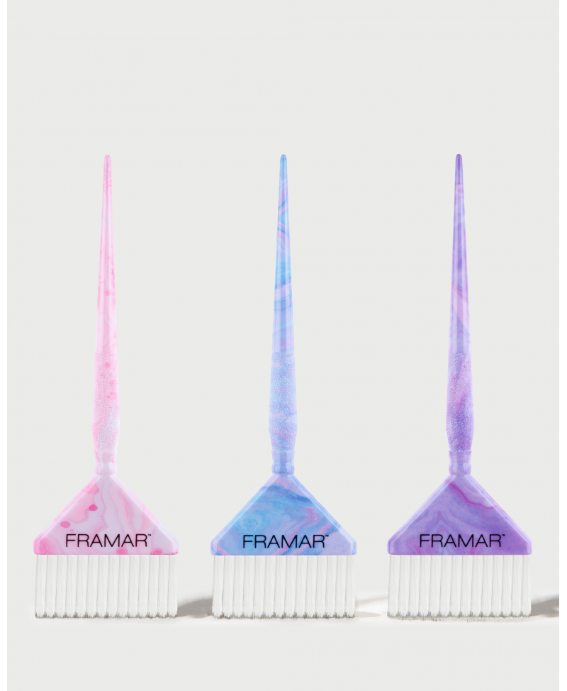El Framar Set Big Daddy Moonstone es esencial para el colorista que valora la eficiencia sin sacrificar la calidad. El diseño extra ancho de estas brochas reduce el número de pasadas necesarias para cubrir una sección, lo que significa menos tiempo en la silla y más clientes satisfechos. El set de 3 permite trabajar con múltiples fórmulas de color simultáneamente.