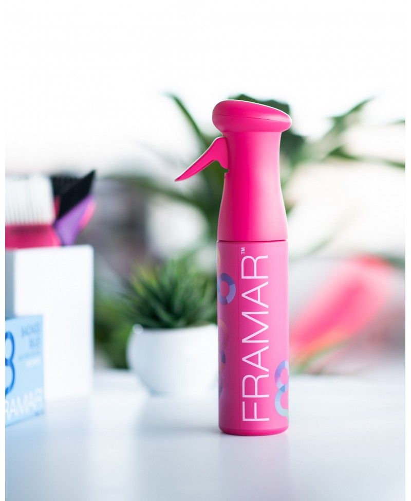 Spray Continuo Framar Myst Assist (Rosado). Pulverizador de neblina ultra fina para humedecer el cabello sin saturar. Ideal para corte, peinado y preparación química.
