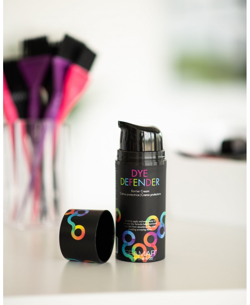 El último toque profesional en cada servicio de coloración es un contorno de piel limpio y sin manchas. La Crema Barrera Dye Defender de Framar es esencial para crear un escudo protector suave y efectivo alrededor de la línea del cabello.