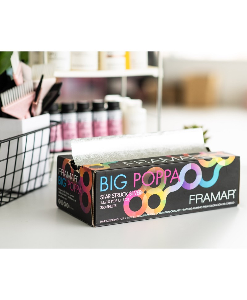 Hojas Pop Ups Big Poppa (25x36cm). El tamaño más grande de Framar. Ideal para cabello largo y grueso. Sistema pop-up para máxima velocidad y agarre Star Struck.