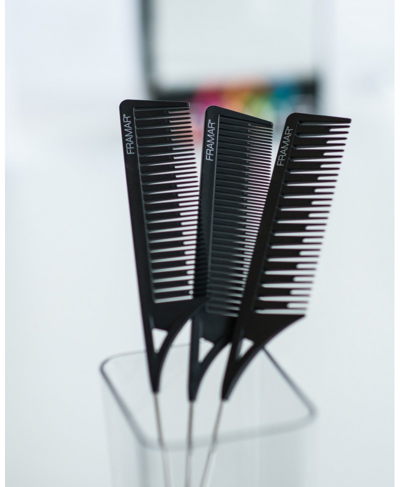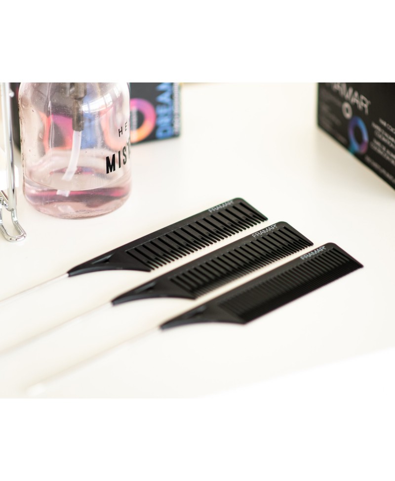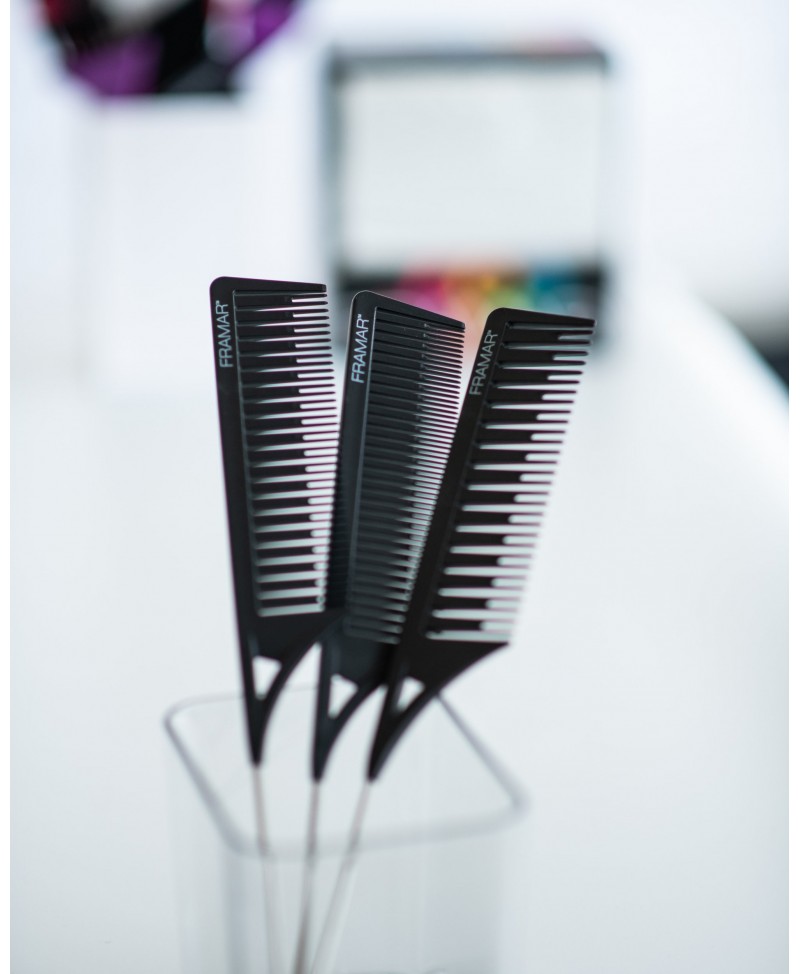 Peine Separador Framar Dreamweaver (Negro). Diseñado para crear secciones y tejidos de cabello rápidos y precisos. Ideal para foiling y balayage consistente.