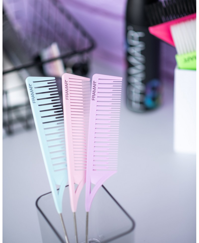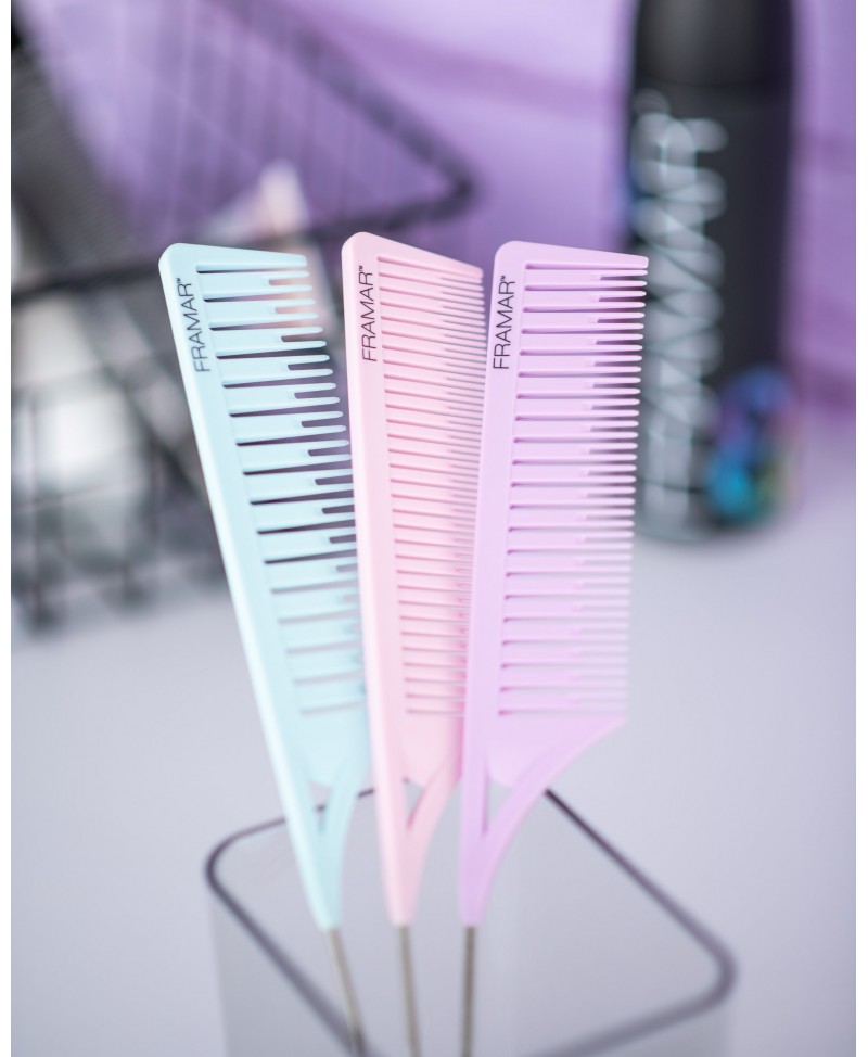 Peine Separador Framar Dreamweaver en color pastel. Diseñado para seccionar el cabello con precisión y rapidez. Ideal para balayage y foiling estético.