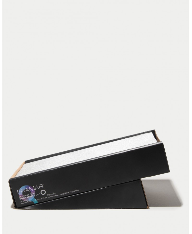 Hojas de aluminio Framar Star Struck Embossed, 13x30cm. Textura antideslizante para agarre superior. Pre-cortadas para mayor eficiencia en mechas.