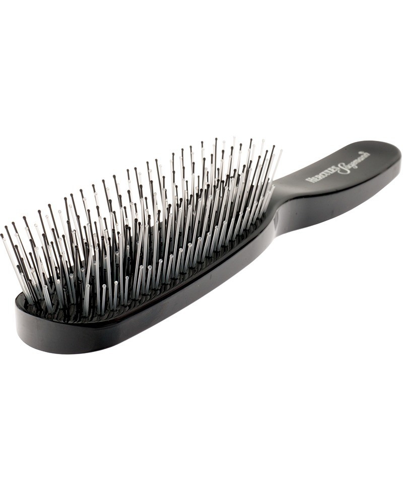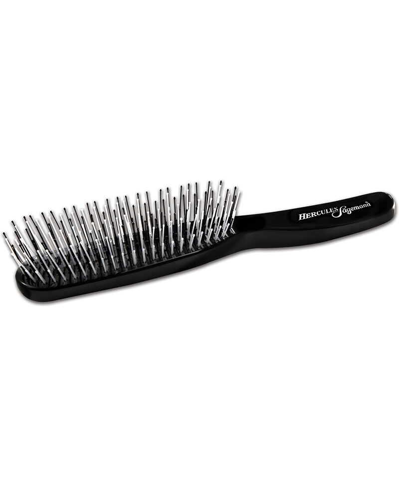 El Cepillo Original Hércules para Desenredar en color negro es la elección profesional para el cuidado diario. Su diseño robusto y ergonómico, junto con sus cerdas flexibles y espaciadas, se deslizan suavemente a través de los nudos sin causar dolor ni rotura, siendo ideal para todo tipo de cabello, especialmente el que está mojado.