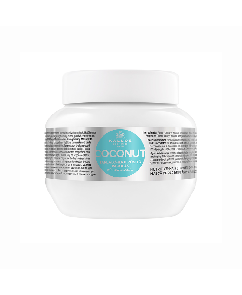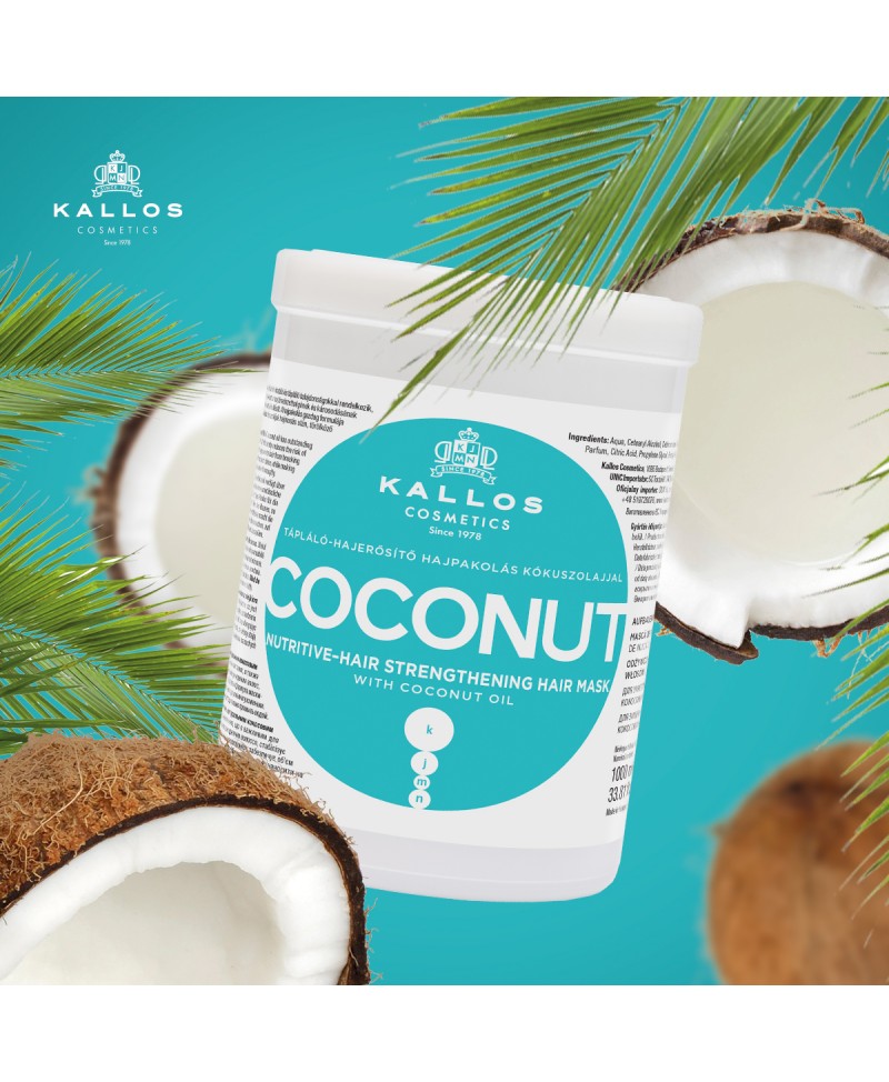 ¡Consigue un cabello hidratado, suave y libre de frizz con la nutritiva Máscara de Coco de Kallos!