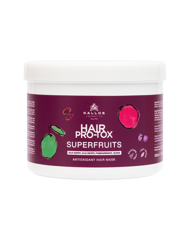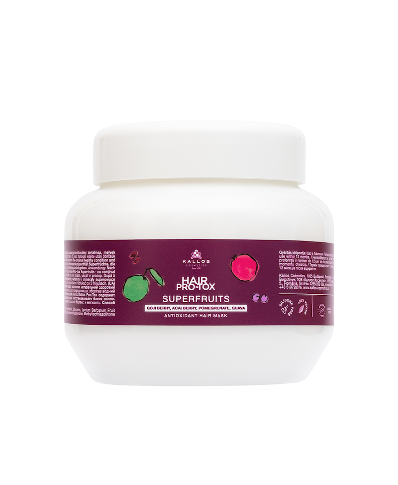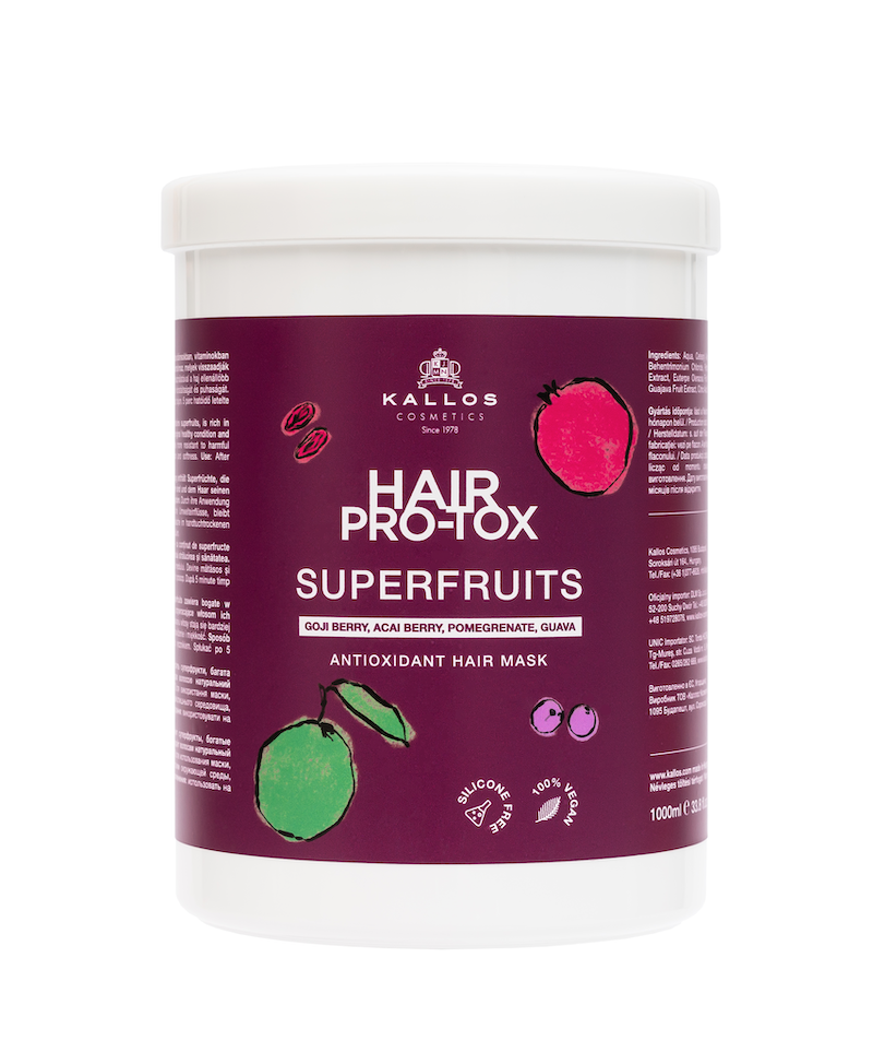 La Máscara Hair Pro-tox Superfruits de Kallos es un tratamiento intensivo diseñado para la reparación total. Su complejo Pro-tox y los extractos de Superfrutas penetran profundamente para reconstruir el cabello dañado y ofrecerle la máxima protección antioxidante, dejándolo suave y fuerte.