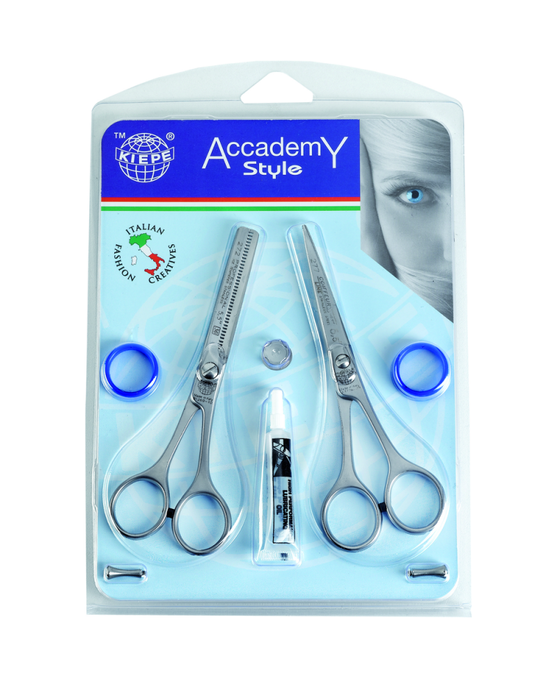 Set de tijeras Kiepe Standard Series (2 piezas). Incluye tijera de corte y esculpidora. Esencial para estudiantes y profesionales. Calidad y precisión para iniciación.