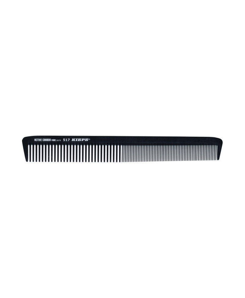 Peineta Kiepe 517 de fibra de carbón, ideal para corte a máquina, degradados y flat tops. Rígida, anti-estática y resistente al calor. Precisión profesional.