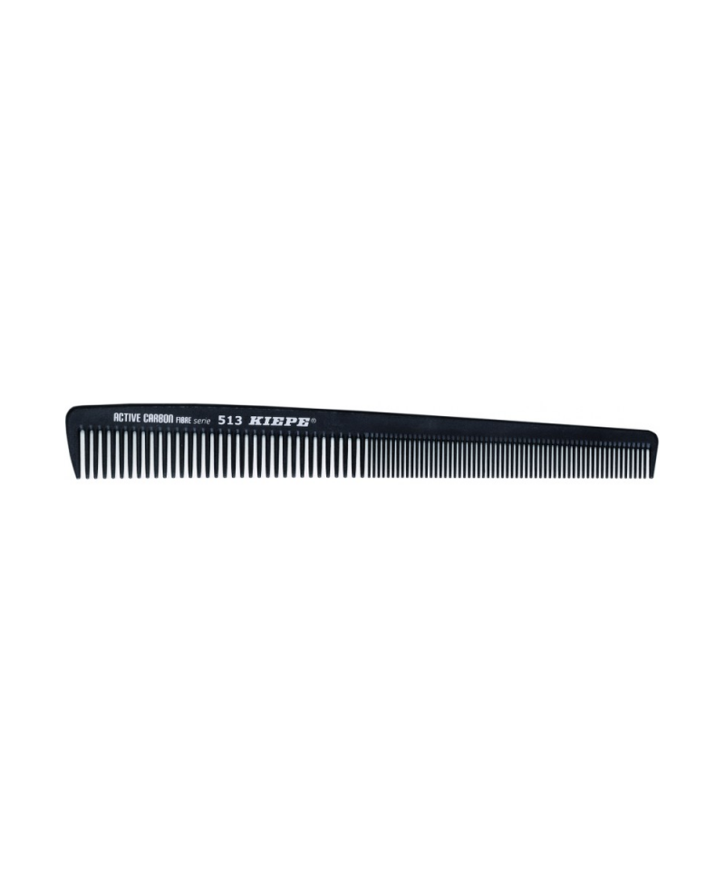 Peineta Kiepe 513 de fibra de carbón, diseñada para crear desvanecidos (fades) y mezclas perfectas. 100% anti-estática y resistente para corte profesional.