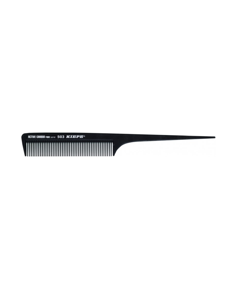 Peineta Kiepe 503 de fibra de carbón, ideal para retoques, detalles y llevar en el bolsillo. Compacta, anti-estática y resistente al calor. Máxima precisión.