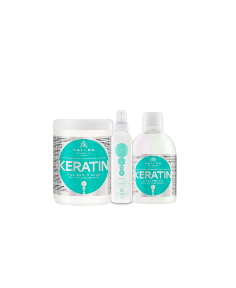 Kallos Keratin Power Shampoo, Mascarilla, Regenerador Capilar | Pack 3